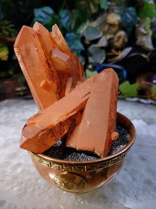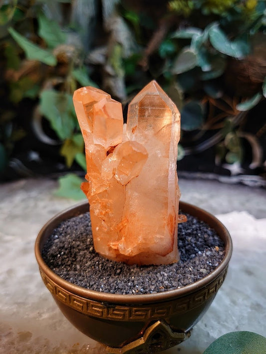 Tangerine Quartz Cluster from Minas Gerais, Brazil / 255g / Sunfire Quartz for Altar and Home Decor / Small Cabinet Size
