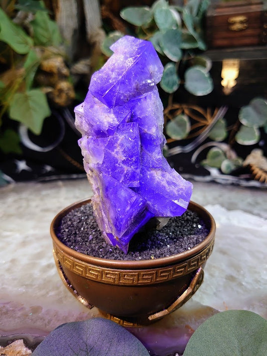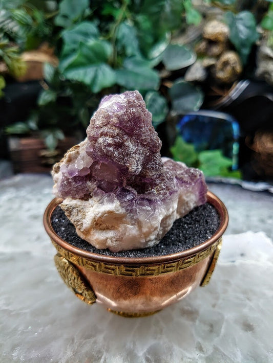 734g Purple Fluorite Cluster "Purple Rain Pocket" on Matrix From United Kingdom for Altar Decor / Meditation / Collection