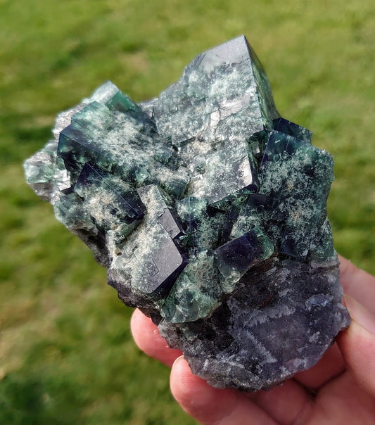 542g Naughty Gnome Pocket Green/Blue Fluorite Cluster "Diana Maria Mine" on Matrix From United Kingdom for Home & Altar Decor / Collection