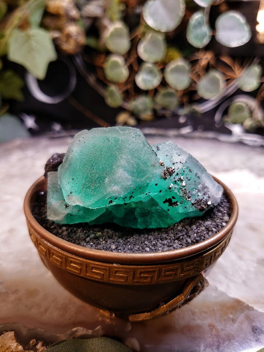 132g Cerro de Pasco Green Fluorite Cluster with Bournonite and Pyrite from Peru for Altar Decor / Meditation / Collection / Energy Work