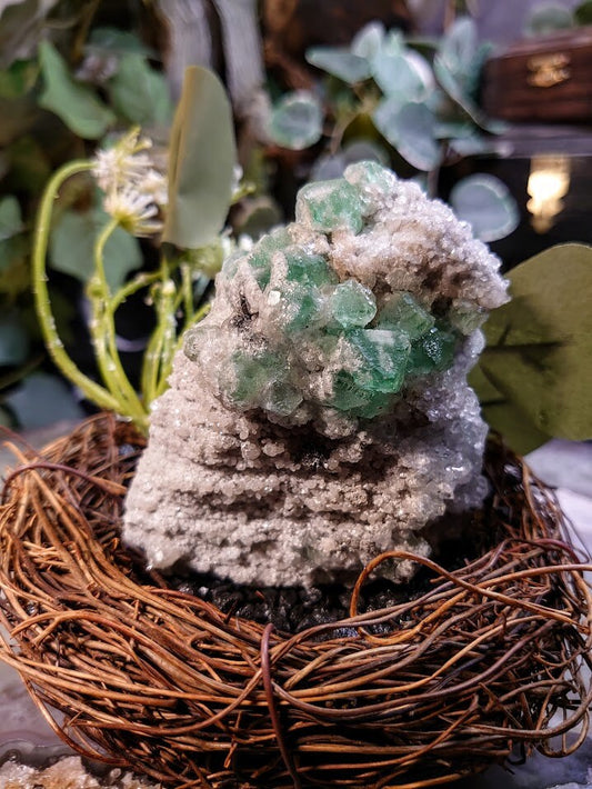 Green Fluorite Crystals with Calcite Coating from Mandrosonoro, Madagascar for Altar Decor / 777g / Meditation / Collection / Energy Work