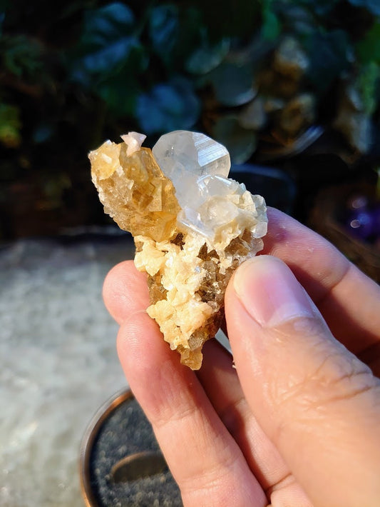 Golden Fluorite Cluster with Tabular Barite From Moscona Mine, Spain for Collection / 79.01g / Energy Work / Altar Decor / Meditation /