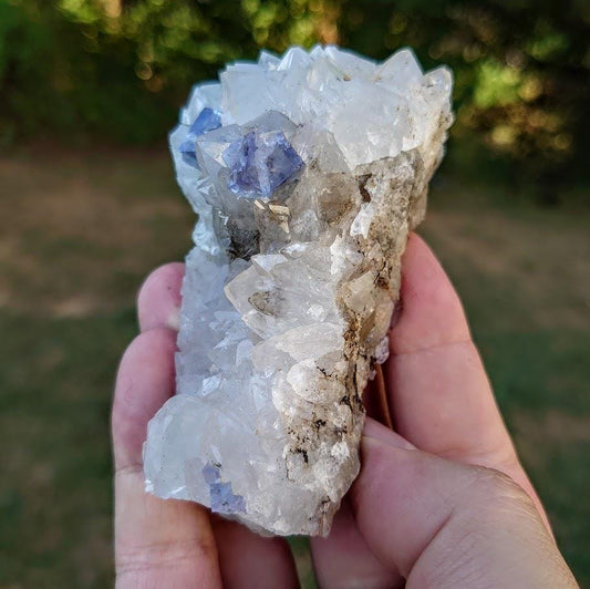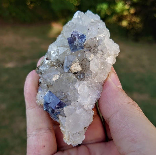 Milky Way Pocket Blue/Green Fluorite Cluster on Quartz, Diana Maria Mine, Rogerley Quarry From United Kingdom / 230g / Small Cabinet Size