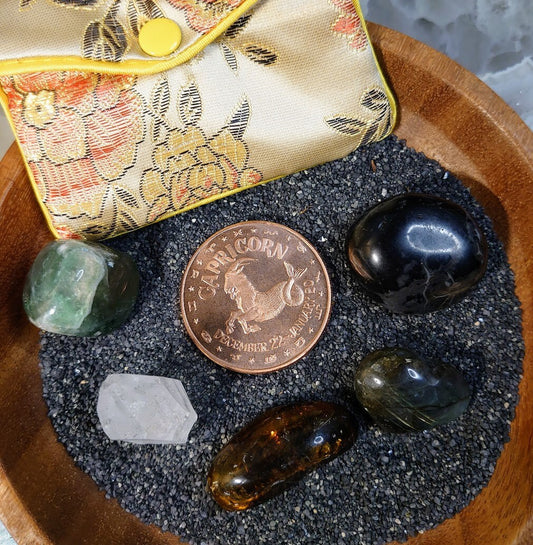 Capricorn Zodiac Crystal Kit with 1oz Copper Coin / Astrology Kit / Medicine Bag / Crystal Set / Crystal Kit