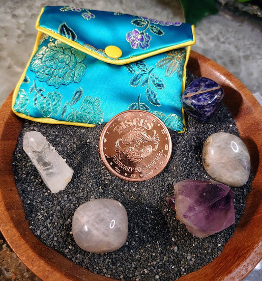 Pisces Zodiac Crystal Kit with 1oz Copper Coin / Astrology Kit / Medicine Bag / Crystal Set / Crystal Kit