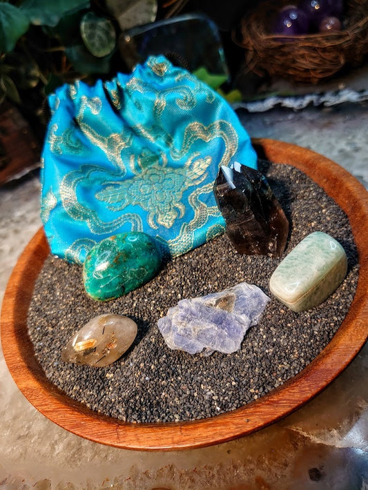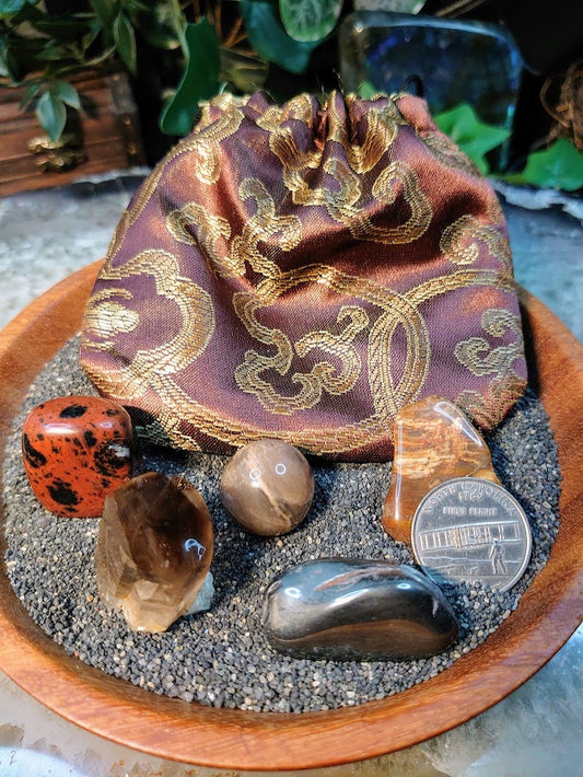 Grounding Mojo Bag / Crystal Healing Kit / Medicine Bag / Crystal Set / Meditation Stones