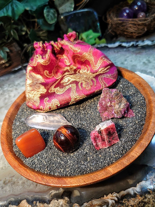 Passion Mojo Bag / Crystal Healing Kit / Medicine Bag / Crystal Set / Meditation Stones