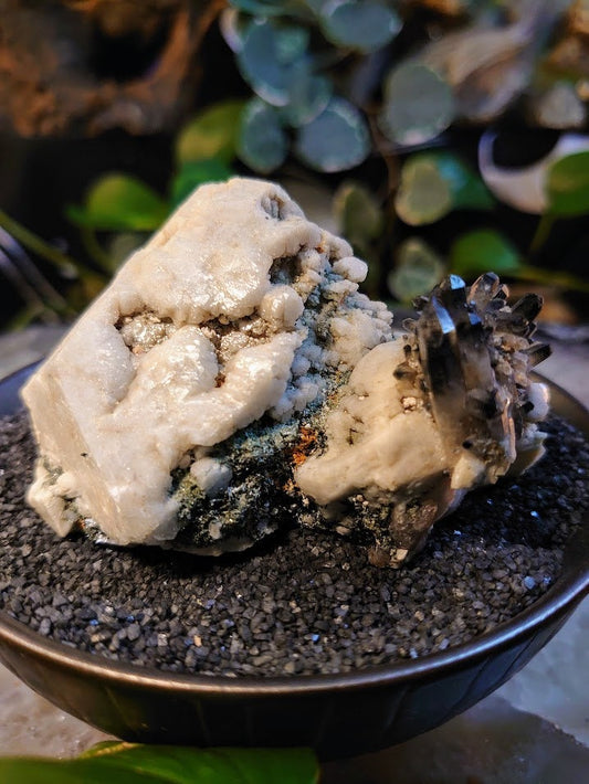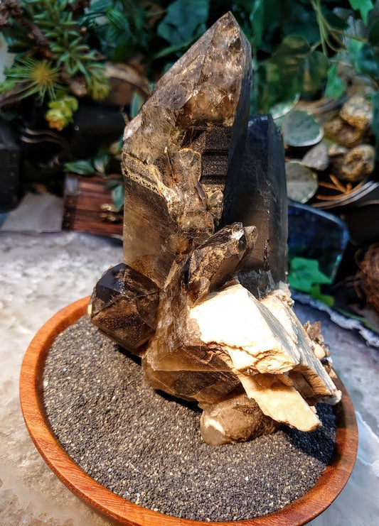 Black Tipped Smoky Quartz Cluster and Micro Aegirine Rods on Feldspar from Malawi for Home and Altar Decor / 194g / Collection / Meditation