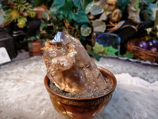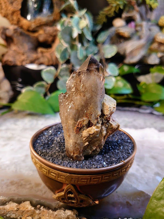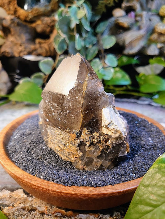 4" Smoky Quartz Point with Calcite and Rutile from Malawi for Home and Altar Decor / 168g / Collection / Meditation