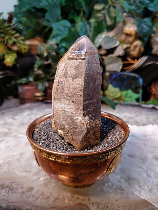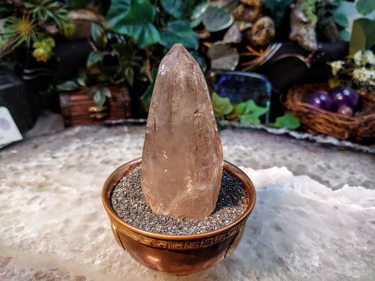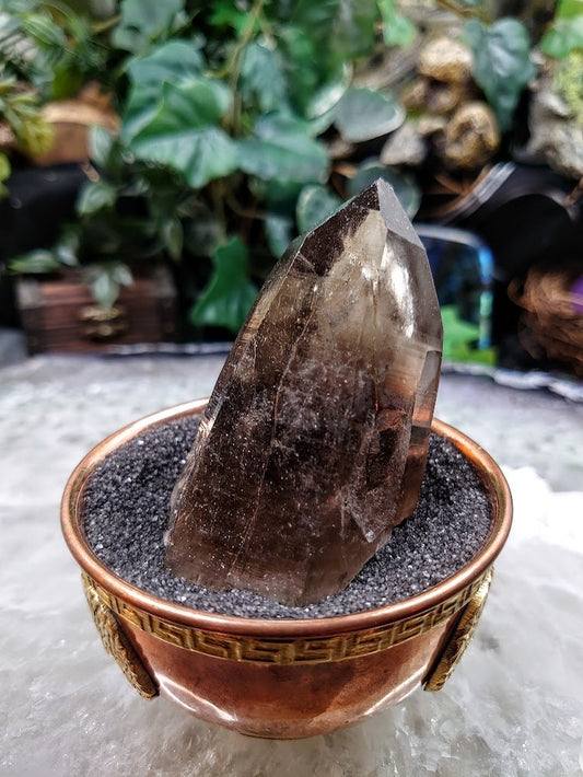 3 3/4" Smoky Quartz Point with Heavy Etching from Malawi for Home and Altar Decor / Collection / Meditation