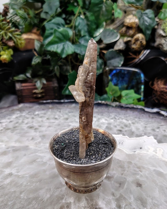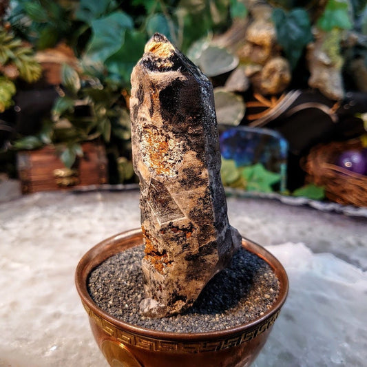 3 3/4" Calcite Coated Smoky Quartz Point with Phantom from Malawi for Home and Altar Decor / 175g / Collection / Meditation
