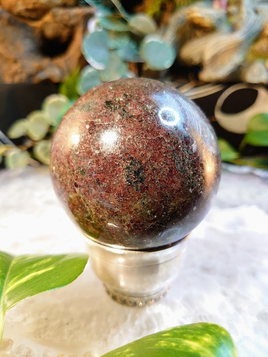 3" Red Garnet Sphere from Madagascar for Crystal Healing/ Gemstone Home and Altar Decor/ Reiki/ Meditation