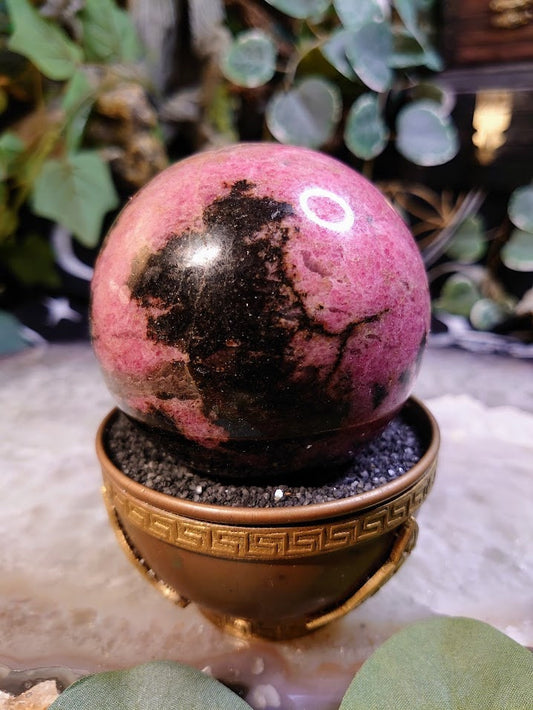 2.75" Rhodonite Sphere with Black Manganese Inclusions from Madagascar for Crystal Healing/ Reiki/ Meditation/ Home & Altar Decor