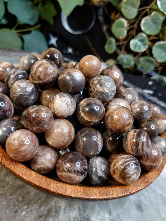 Small Black Moonstone/Sunstone Spheres from Madagascar for Crystal Healing / Meditation / Reiki / Home and Altar Decor / Gifting