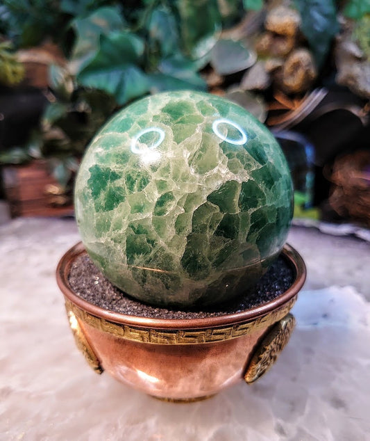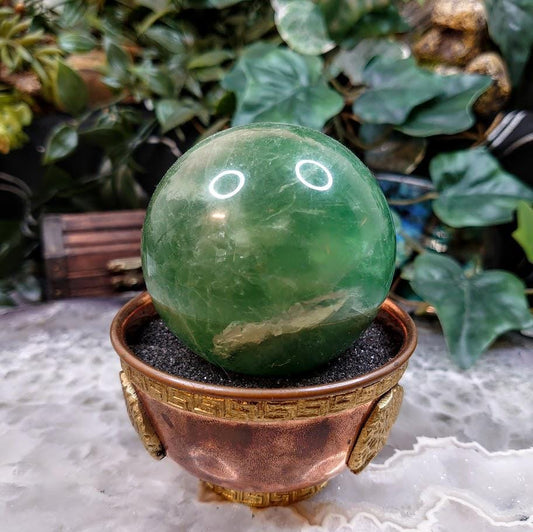 2 3/4" Green Fluorite Sphere from China for Crystal Healing / 410g / UV Reactive / Reiki / Meditation / Gemstone Collectors / Altar Decor