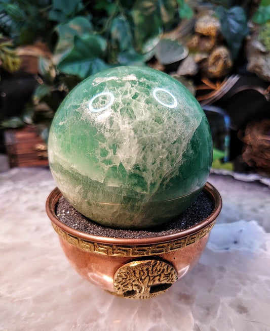 3" Green Fluorite Sphere from China for Crystal Healing / 622g / UV Reactive / Reiki / Meditation / Gemstone Collectors / Altar Decor