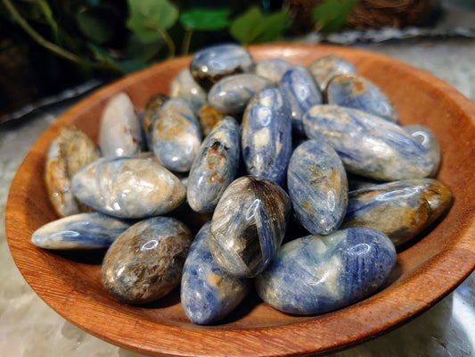 Blue Kyanite and Clear Quartz Tumbled Stones from Brazil - Select Your Size / Polished Pebble / for Crystal Healing & Grids / Meditation