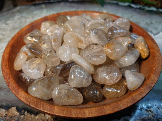Rutilated Clear Quartz Tumbled Stone from Brazil / Polished Pebbles/ for Crystal Healing & Grids/ Golden Rutile / Meditation/ Energy Work