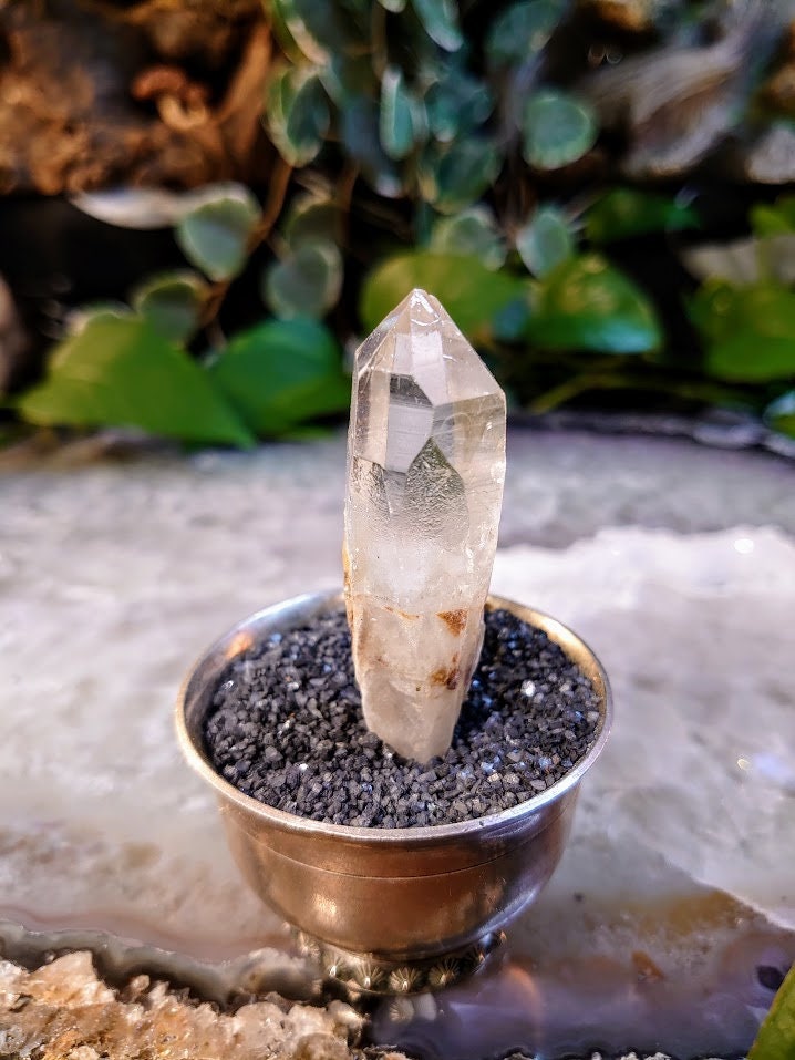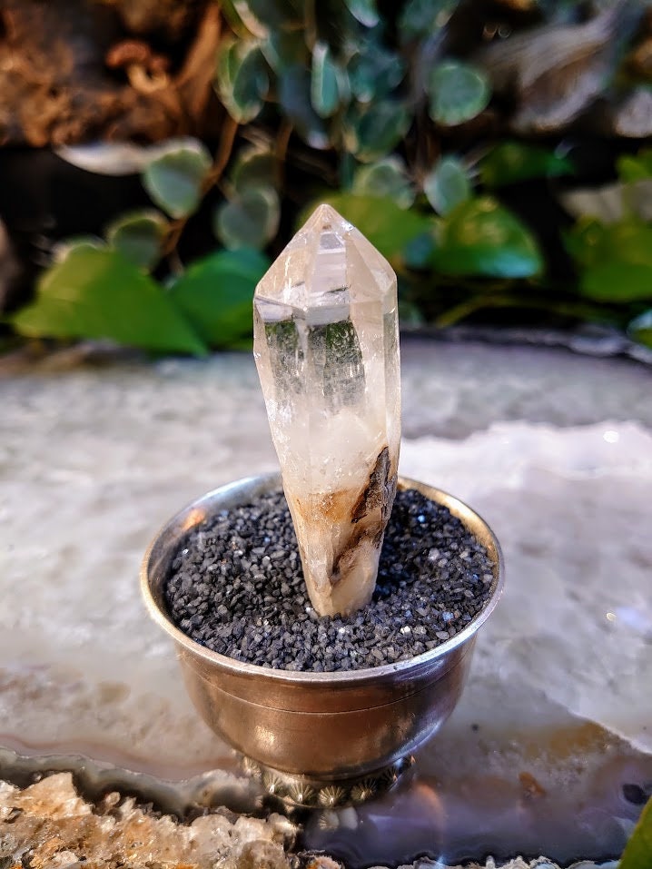 This Lemurian Quartz comes to us from the Congo. It is said that the Lemurian priests and priestesses encoded them with their Sacred knowledge, leaving the barcode-like striations on the sides of the Quartz. They then hid the crystals where they would be found by modern humans when we needed them most. Lemurian Quartz resonates with the Third Eye, Crown, and Soul Star chakras. Working with Lemurian crystals will aid you in unlocking past life memories and ancient Lemurian wisdom. Run your index finger on your receiving hand (your non-dominant hand) over the barcodes of your crystal during meditation to access its stored wisdom. They also enhance lucid dreaming and astral travel. Lemurian Quartz is a stone of unity; reminding us that we are all connected, all part of the collective consciousness. They can help us fight off loneliness and feelings of separation.