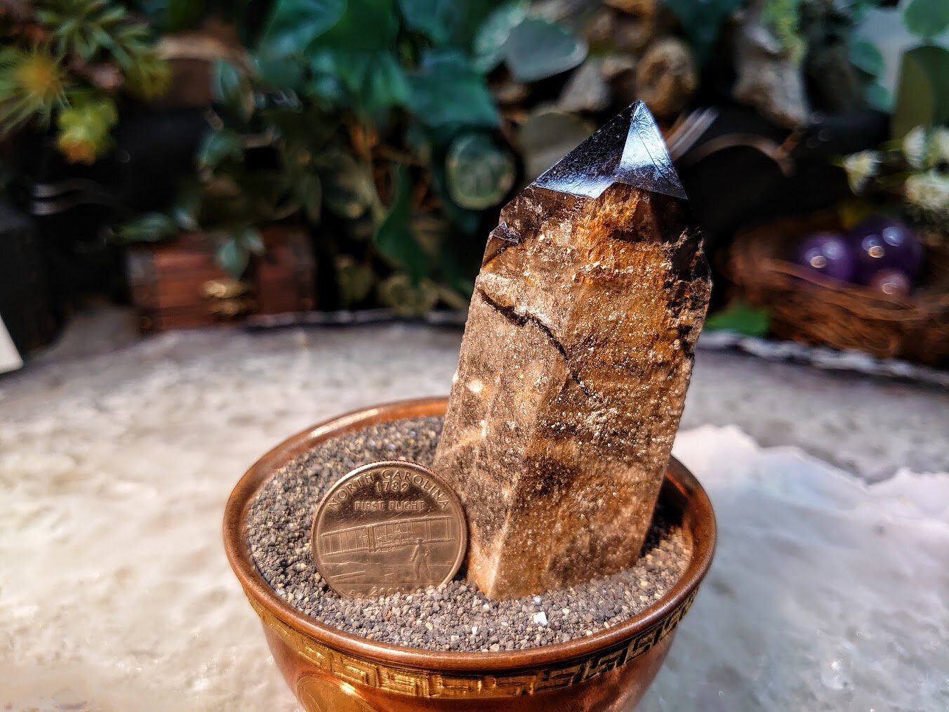 Smokey Quartz resonates with the Root and Earth Star chakras. It is the Patriarch the Quartz family with a Mohs hardness of 7. Smokey Quartz is grounding, purifying, and has amazing transmuting abilities. Smokey Quartz contains the DNA and memories of Gaia herself. Legend has it that Smokey Quartz was once clear, but it absorbed all of the negative energy of Mother Earth herself, and that turned it brown. Smokey Quartz instantly grounds you, rooting you into the three-dimensional realm. It is a great stone for psychics and intuitives who spend a lot of time in the upper realms. It provides the balance and stability that is needed to sustain that type of work. Smokey Quartz transmutes energies that are not serving you into energies that are aligned with your highest good. It is protective against psychic attack and other unwanted energies. Smokey Quartz is also a wonderful space clearer, and is a great addition to any home, workspace, or sacred space. It carries a comforting, encouraging, strengthening, fatherly, and masculine vibration.
