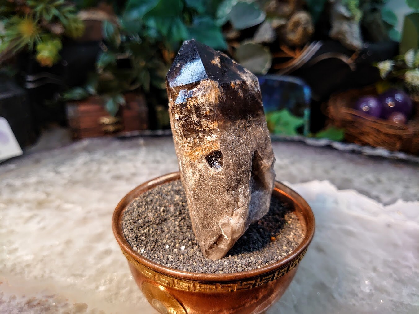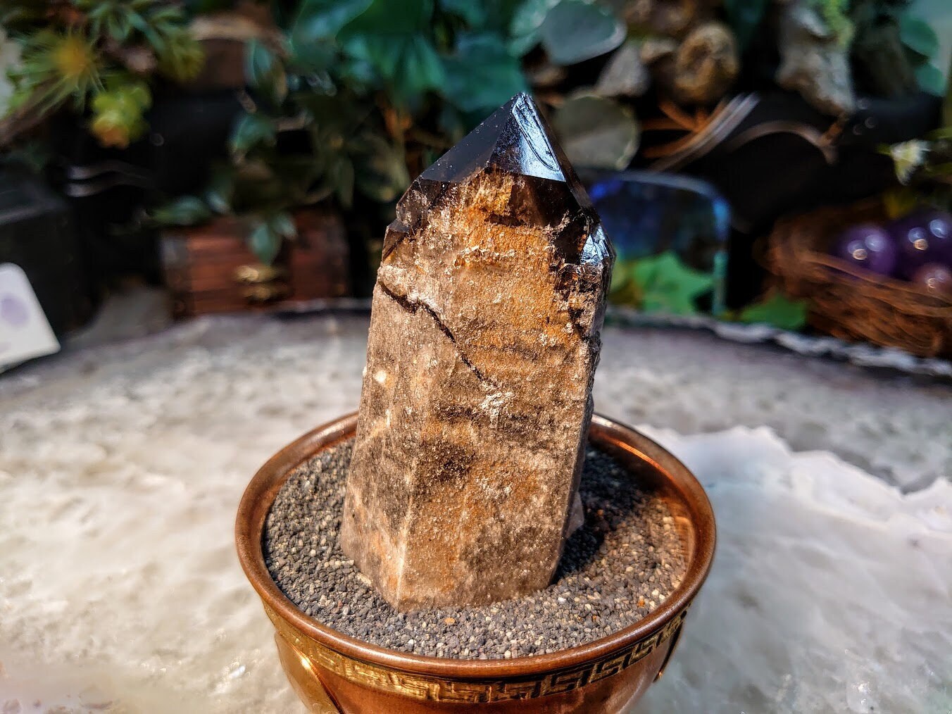 3 3/4" Calcite Coated Smoky Quartz Point with Phantom from Malawi for Home and Altar Decor / 184g / Collection