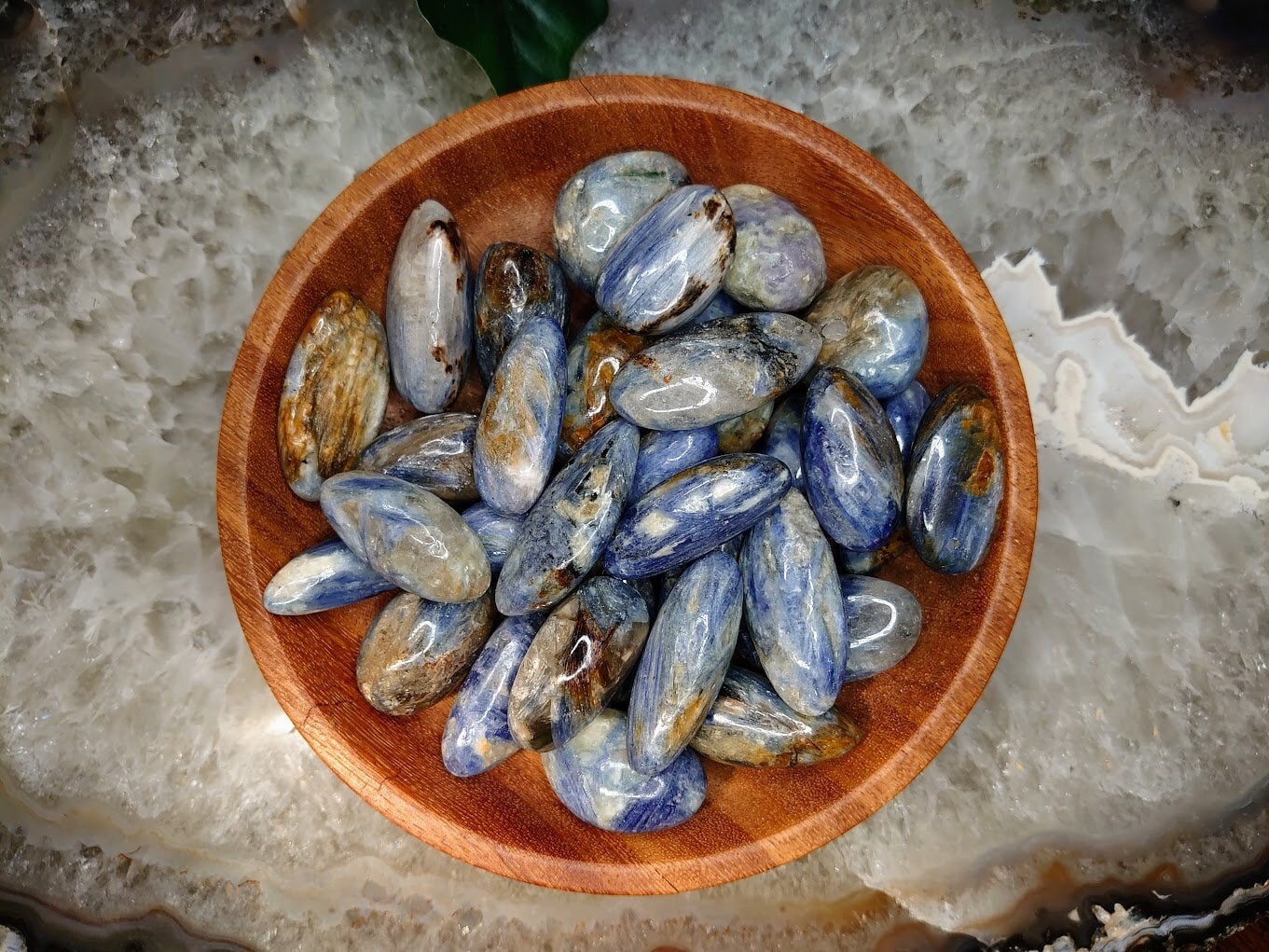 Blue Kyanite and Clear Quartz Tumbled Stones from Brazil - Select Your Size / Polished Pebble / for Crystal Healing & Grids / Meditation