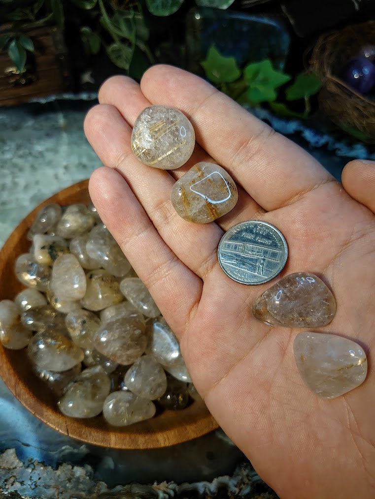 Rutilated Clear Quartz Tumbled Stone from Brazil / Polished Pebbles/ for Crystal Healing & Grids/ Golden Rutile / Meditation/ Energy Work